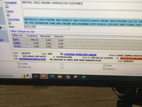 2008 Jaguar XJ Engine 4.2L w/o supercharged VIN B, 8th digit
